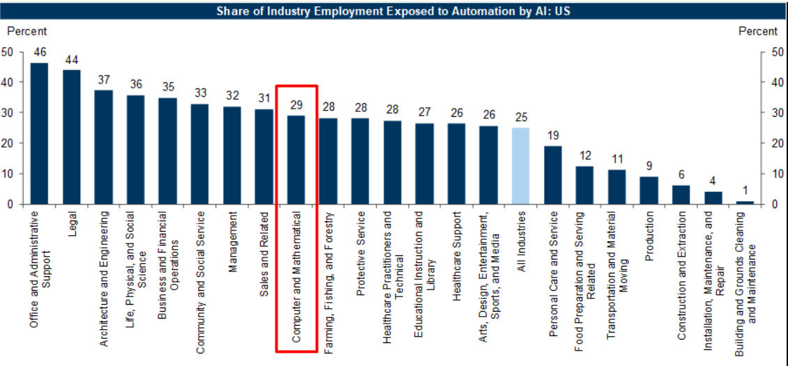 Y aunque programadores y matemáticos no estamos en la cima de esa lista, tampoco estamos exentos: tenemos un 29% de exposición.