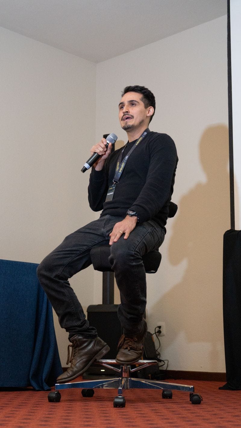 En la foto que te comparto, capturo un momento especial. Ahí estoy, frente a más de 30 personas, defendiendo una idea para convencer al grupo de invertir en un proyecto. Fue parte de una dinámica dentro del workshop #wealthxab 2024.